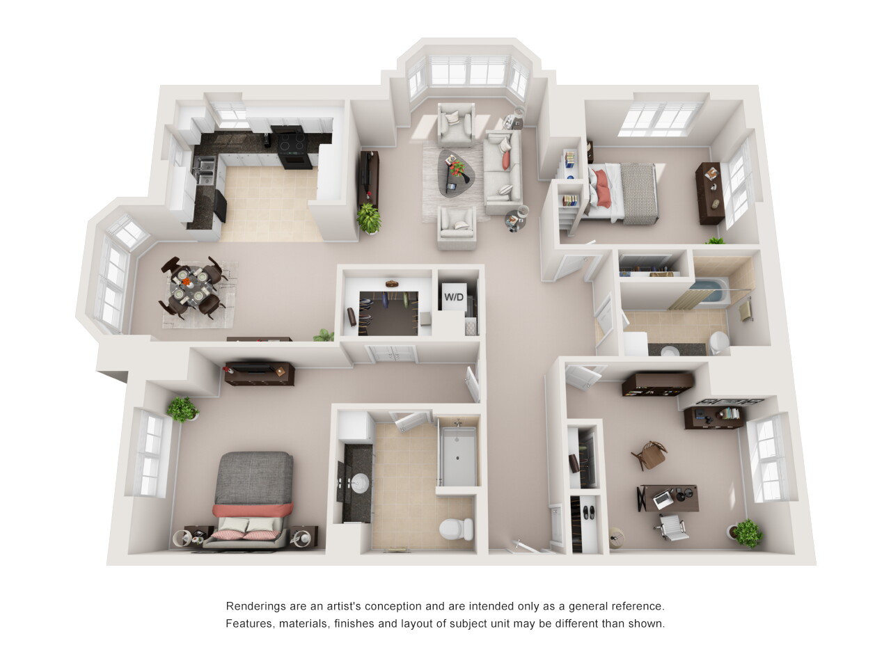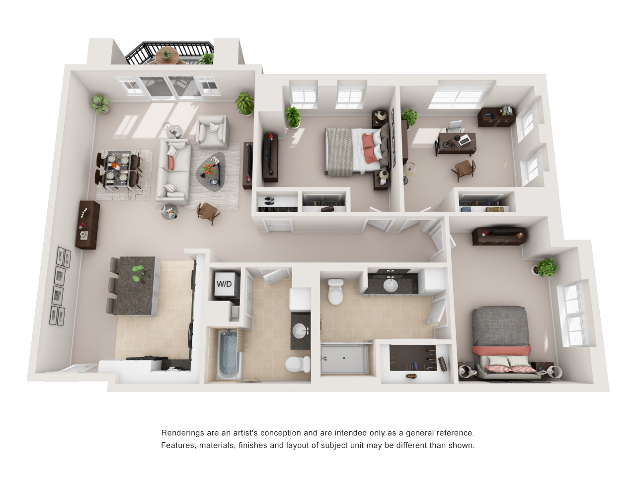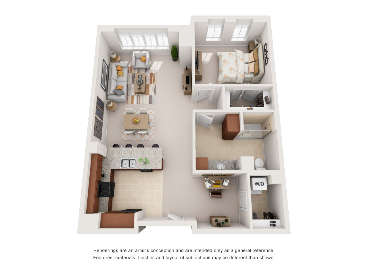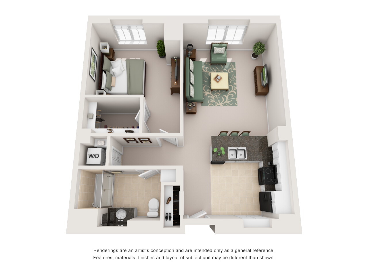 We offer a variety of apartment floor plans, from one-bedroom, one-bath styles to three bedrooms and two baths. Some feature extras like balconies and bonus rooms.
