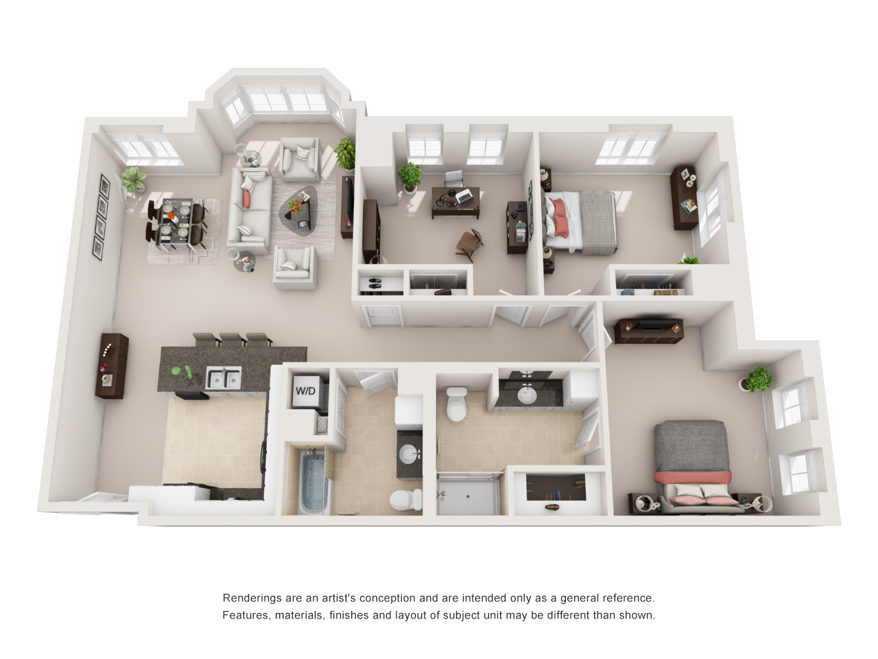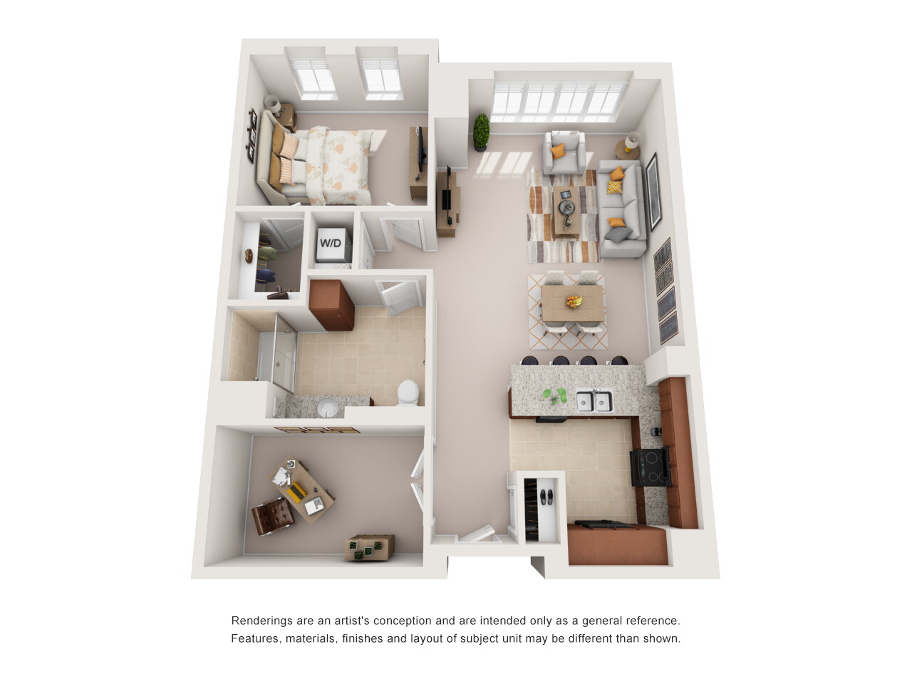We offer a variety of apartment floor plans, from one-bedroom, one-bath styles to three bedrooms and two baths. Some feature extras like balconies and bonus rooms.